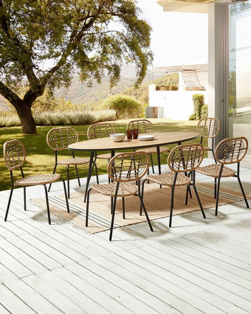 Připravte se na teplé letní dny strávené s rodinou a přáteli v zahradě a doplňte svůj venkovní prostor touto stylovou sadou zahradních židlí. Židle jsou vyrobeny z odolných materiálů a mají okouzlující opěradla a sedadla vyrobená z výpletu z umělého ratanu. Jsou stohovatelné, takže je lze snadno uskladnit.