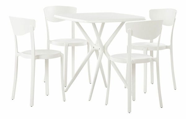Užijte si letní počasí na vašem balkoně nebo terase s touto univerzální sadou stolu a židlí. Je vyrobena ze syntetického materiálu, takže je lehká a odolná vůči povětrnostním vlivům. Díky modernímu designu se nábytek hodí do každého interiéru nebo exteriéru. Židle mají ochranné kryty nohou a malý otvor na sedadle, který zabraňuje hromadění vody. Lze je také stohovat, takže vám pomohou ušetřit úložný prostor.