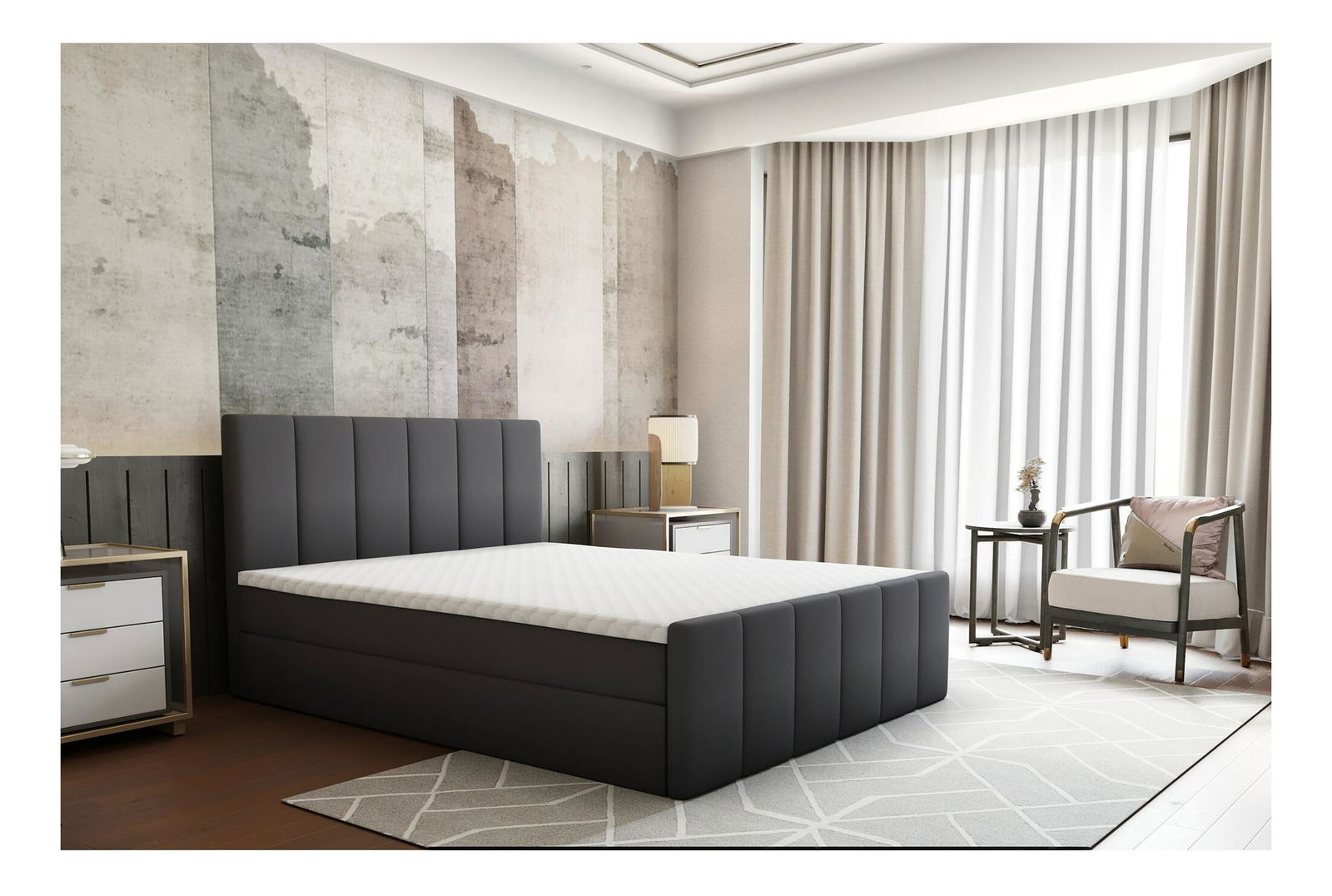 Svatyně klidu a odpočinku. Místo, kde se plní i ty nejtajnější sny. Pojďte se s námi zasnít. Moderní a zároveň kvalitní boxspringová postel Skar se stane dominantou vaší ložnice a přemění vaši ložnici na bohatou oázu klidu. S ní bude každý okamžik požitkem. Ne nadarmo se přece říká, že noc má svoji moc, která pramení v kvalitním spánku v kvalitní posteli. Postele typu Boxspring zajistí svojí konstrukcí mnohem lepší spánek než ty, které znáte dosud. Naše komfortní dvoulůžko Skar v látce Malmo New v šedé barvě s jednou vrstvou bonelových pružin vám dopřeje takový spánek, jaký potřebujete. Vysoké čelo působí díky oblým hranám měkce a něžně. Čalounění je dekorativně prošité, což dodává posteli nádech elegance. Základ tvoří čaluněná dřevěná konstrukce, ve které je uktytý úložný prostor. K němu se dostanete vyklopením boční části postele. Vrchní část postele tvoří topper o výšce 4 cm, který zvyšuje kvalitu spánku pro maximální regeneraci. Snímatelný potah na zip lze prát v pračce při stupních do 40°C. S boxpringovou postelí Skar je každá jedna noc nezapomenutelným zážitkem a budete v ní trávit mnohem více času, než jste si mysleli.