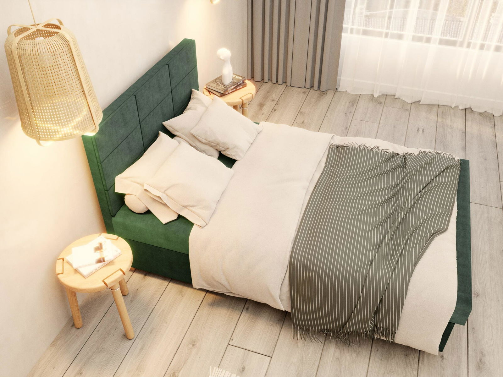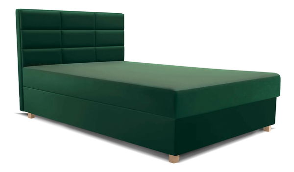 Moderní jednolůžková postel 120 cm - Picasso II (tmavě zelená) s úložným prostorem a matrací je ideální volbou pro každý současný ložnicový interiér. Konstrukce z masivního dřeva a dřevotřísky zajišťuje odolnost a stabilitu. Prošívané čelo postele přidává dotek luxusu a sofistikovanosti. Postel disponuje praktickým úložným prostorem s liftovým mechanismem, který šetří prostor v místnosti. Zahrnuta je také pohodlná matrace s bonellovou pružinou a tlustou pěnou pro podpůrný spánek. Nožičky ze dřeva zaručují pevnou podporu a moderní vzhled. Rozměry plochy na spaní jsou 120x186 cm, postel je vysoká 46 cm od země, což umožňuje snadné vstávání. Potažena je tkaninou Bluvel, která je příjemná na dotek a dodává estetický vzhled posteli.
