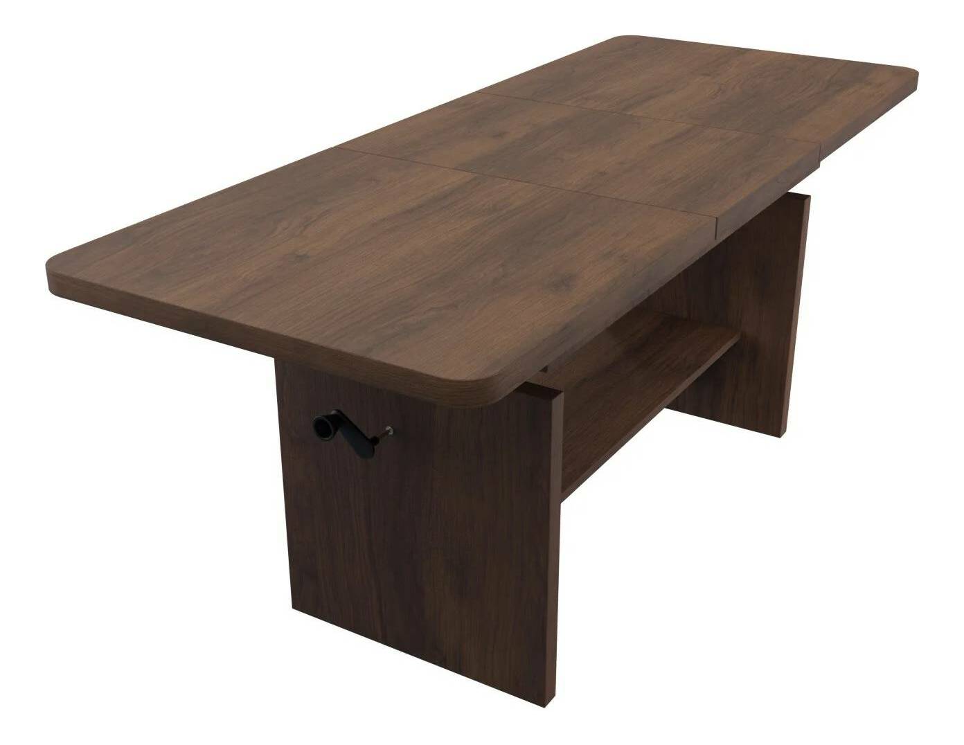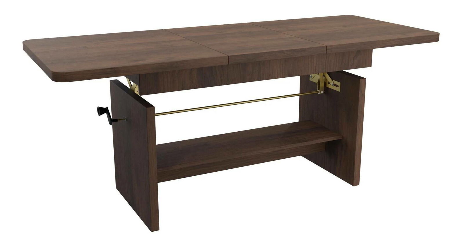 ZobrazitKonferenční stolek Jenny je funkční roztahovací stolek, ze kterého lze velmi jednoduše vykouzlit jídelní stůl. Každý den může v menším provedení stát v obýváku a v případě potřeby jej rychlým pohybem zvětšíme ze 116 cm až na 156 cm. Navíc, pokud nedisponujeme velkou plochou, lze díky výšce stolu od 59 cm do 70 cm využít i jako stůl pro rodinné večeře. Stůl je pevný a přežije nejednu párty. Je vybaven praktickou policí, která se vám bude hodit pro odložení novin, knih nebo ovladače od TV.