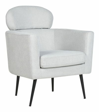 Osvěžte vzhled svého obývacího prostoru pomocí tohoto čalouněného křesla. Jeho jedinečný design nejenže upoutá pozornost všech vašich hostů, ale díky tlustému sedacímu polštáři a oválné opěrce hlavy umístěné nad opěradlem vám umožní relaxovat a odpočívat. Díky klasické světle šedé barvě se hodí k různým stylům interiérů – od retro až po moderní.