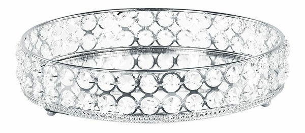 Tento elegantní tác je praktickým a zároveň dekorativním doplňkem do každého glamour interiéru. Je vyroben z kovu, má lesklé skleněné kamínky a zrcadlové dno, které krásně odráží okolí. Je lehký, takže jej můžete jednoduše přemístit z jednoho místa na druhé. Použijte jej v ložnici pro uložení šperků a jiných drobností nebo v obývacím pokoji jako stylový doplněk.