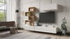 Televizní jednotka a police BR14 jsou univerzálním prvkem - stojící (5cm stříbrné nohy) nebo závěsné,