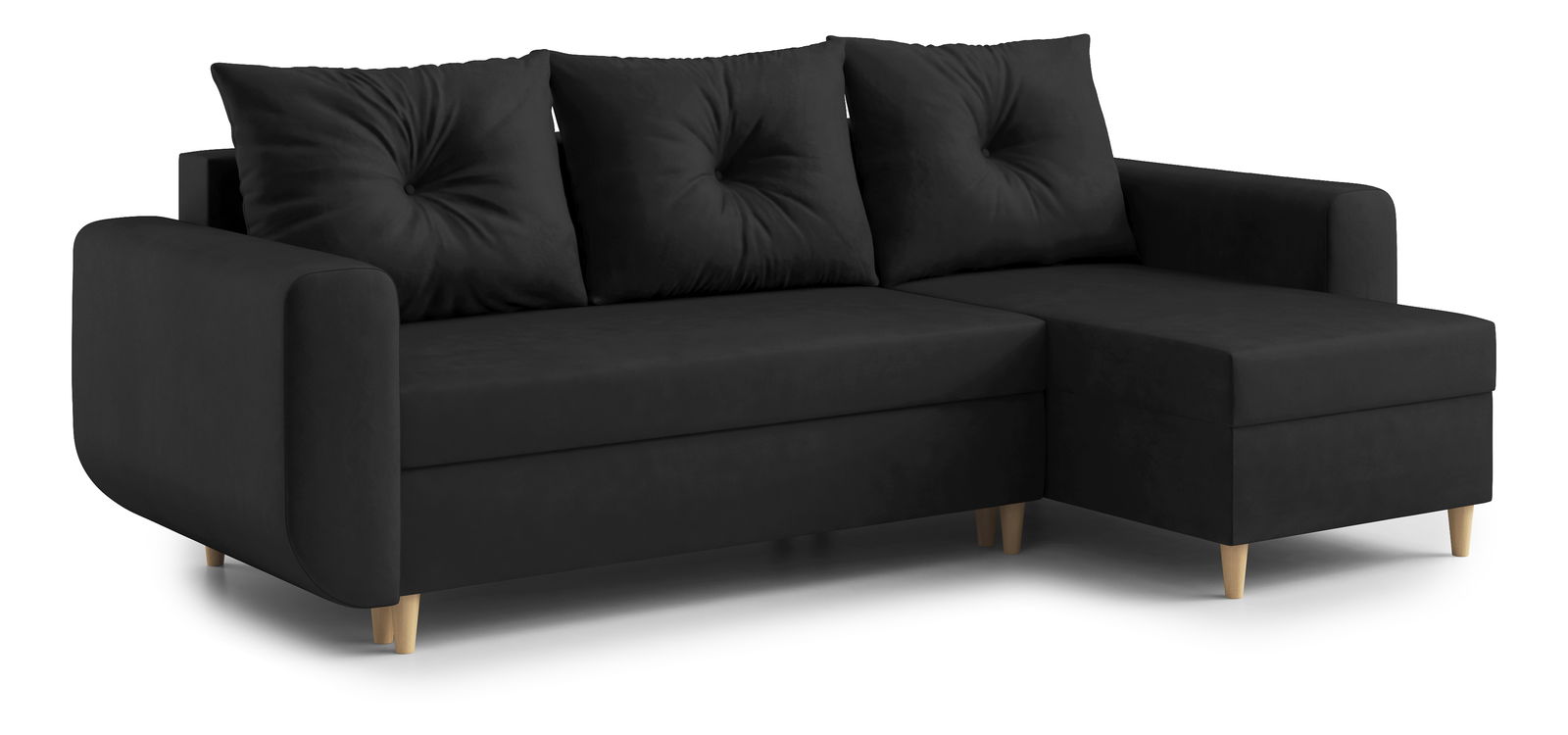 ZobrazitPravá rohová sedačka Eugenie představuje harmonii stylu a komfortu. Solidní konstrukce je vytvořena ze dřeva a 18 mm nábytkové desky, zatímco výplně z bonellových pružin a pěny T 30 zajišťují pohodlí. Esteticky příjemné naturální dřevěné nožičky mají výšku 10 cm a elegantní opěrky na ruce měří 56x20x88 cm. Úložný prostor a trio podušek přidávají na funkcionalitě, zatímco plocha na spaní 200x140 cm zajišťuje klidný odpočinek.
