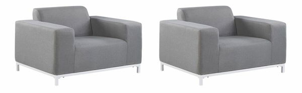 Tato sada 2 křesel dokonale vynikne v zahradě nebo na terase, ale také může být skvělým doplňkem vašeho interiéru. Souprava je vybavena širokými opěrkami na ruce, které zajišťují pohodlné sezení, a zároveň má mírně nakloněné opěradlo a hluboké sedátko. Šedé čalounění je vyrobeno z odolné polyesterové tkaniny, která je voděodolná a prodyšná, takže je ideální pro použití v exteriéru. Moderní vzhled a trendová barva dělají z této sady křesel dokonalý doplněk do každého moderního prostoru.