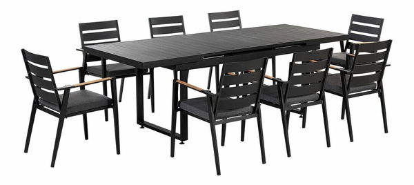 Není nic příjemnějšího než trávit čas se svými nejbližšími. S tímto rozkládacím stolem a židlemi si budete moci užít společné chvíle na čerstvém vzduchu a oslavit teplé dny. Díky roztahovacímu mechanismu se ke stolu může usadit až 8 osob, zatímco židle jsou vybaveny sedacími polštáři, které zajistí dokonalý komfort. Souprava je vyrobena z odolného hliníku, díky čemuž ji lze použít v interiéru i exteriéru.