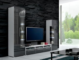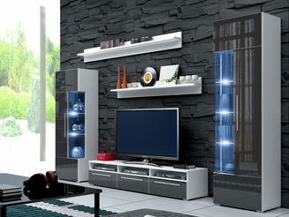 Obývací stěna Ramon I (bílá + lesk bílý) (s osvětlením)