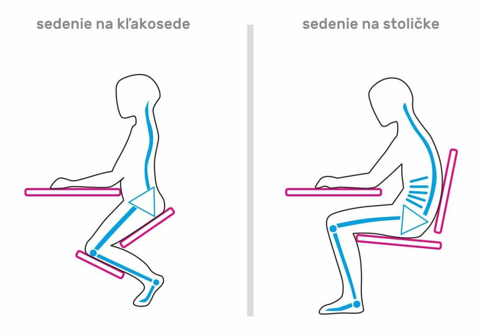 Míváte sedavé zaměstnání a časté bolesti zad? Vyzkoušejte sedět na této balanční Klekačka. Kľačany přenesete část hmotnosti na dolní končetiny, díky čemuž odlehčíte zátěž na páteř. Má speciální zakřivení korpus, který zajišťuje vždy přirozené, zdravé držení tele. Reaguje na různé polohy sezení, čímž zmírňuje napětí v krku, ramenou a zádech. Koleny se opřete o přední opory nohou, nebo se posaďte vpřed chodidly položenými na zemi. Materiál konstrukce je vyroben z březového dřeva a textilií je oděruodolná, čímž zaručuje dlouhou životnost. Klekačka najde své využití nejen v kanceláři ale i při sledování TV, či jiné sedavé činnosti.