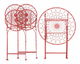Vytvořte si romantickou atmosféru na svém balkoně nebo terase s touto okouzlující venkovní soupravou. Skládá se z kulatého stolu a dvou židlí v syté červené barvě. prostorách.