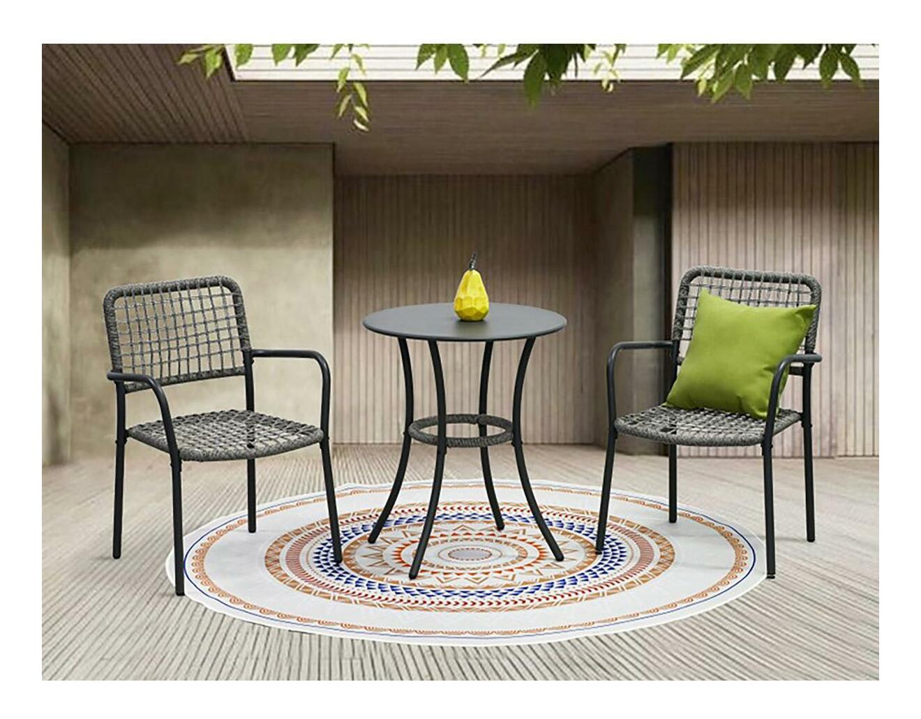 Balkonový set 1+2 je skvělou volbou pro pohodlné posezení na vaší terase nebo balkoně. Skládá se ze dvou židlí a kulatého stolku, což poskytuje ideální prostor pro relaxaci u kávy či čaje. Židle jsou vyrobeny z pevného polyratanu v šedém odstínu a mají stabilní kovovou konstrukci s práškovou povrchovou úpravou v antracitové barvě, která zajišťuje odolnost vůči vnějším vlivům. Deska i nohy stolku jsou vyrobeny z kovu, což zaručuje dlouhou životnost. Moderní design tohoto setu se skvěle hodí do každého vnějšího prostoru a je snadno udržovatelný. Perfektní řešení pro malý i větší vnější prostor.