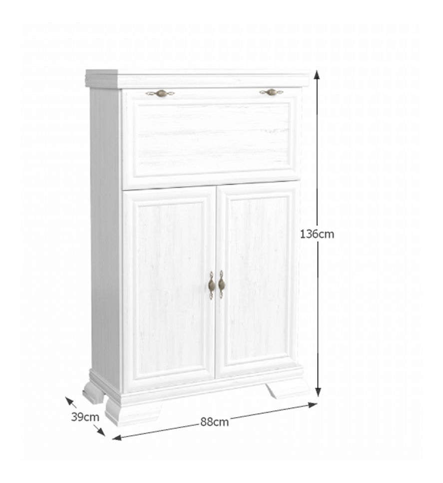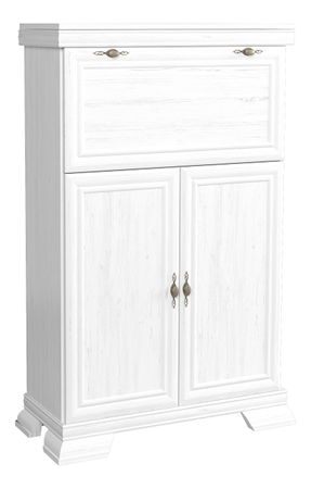 ZobrazitBarová skříňka Kraz v rustikálním stylu s dvířky a výklopnou částí potěší všechny, kteří si chtějí elegantně zařídit obývací pokoje, jídelny nebo pracovny. Má ozdobné vyřezávané nohy a lišty. Dvířka mají kovové úchyty. Barevné provedení barové skříňky je sosna andersen.