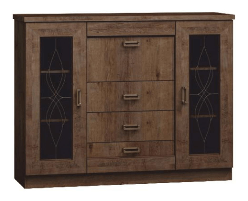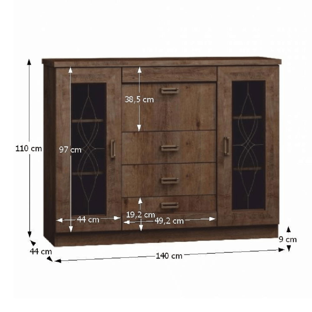 Barová skříňka Tureis Typ T14 je rustikální kousek nábytku s ozdobnými dvířky, šuplíky a výklopnou částí, který přinese tradiční styl do vašeho interiéru. Úchyty jsou vyrobeny z kovu a barevné provedení skříňky je dub lefkas. Je vhodná pro zařízení různých místností jako jídelna, obývací pokoj, ložnice nebo pracovna. Nábytek Tedy je velmi masivní a má větší kovové úchyty na dvířkách a šuplících. Dodává se v pěkném provedení dub lefkas.