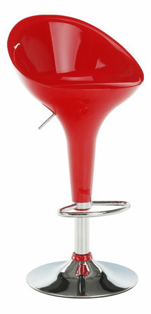 Luxusní barová židle, která se bude dokonale vyjímat nejen u Vás doma, ale i restauracích, barech či kavárnách. Vhodně navržený design pokukuje pohodlné sezení a to i díky vyvýšenému opěradlu a kovové obruči na opření nohou. Chromový podstavec doplňuje celkový vzhled židle. Pod plastovým sedákem je umístěna páčka, pomocí které si umíte nastavit výšku sezení v rozmezí 56-77 cm. Vyrábí se v pěti barvách: červená, bílá, hnědá, černá a zelená.