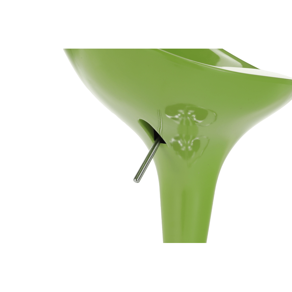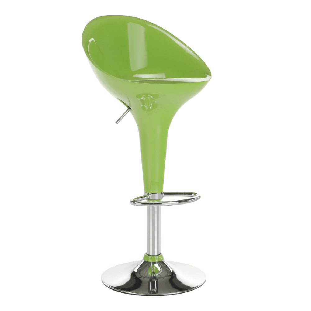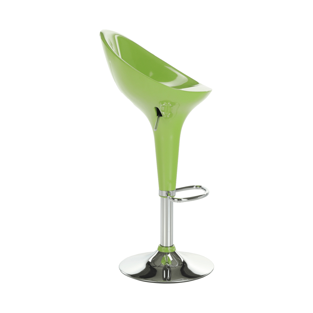 Luxusní barová židle, která se bude dokonale vyjímat nejen u Vás doma, ale i restauracích, barech či kavárnách. Vhodně navržený design pokukuje pohodlné sezení a to i díky vyvýšenému opěradlu a kovové obruči na opření nohou. Chromový podstavec doplňuje celkový vzhled židle. Pod plastovým sedákem je umístěna páčka, pomocí které si umíte nastavit výšku sezení v rozmezí 56-77 cm. Vyrábí se v pěti barvách: červená, bílá, hnědá, černá a zelená.