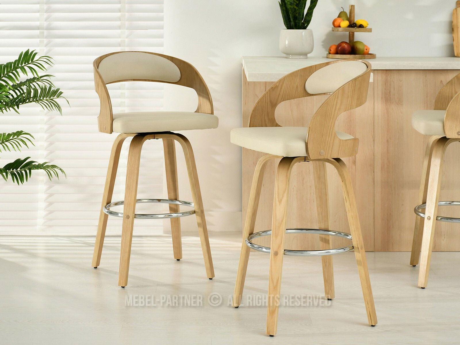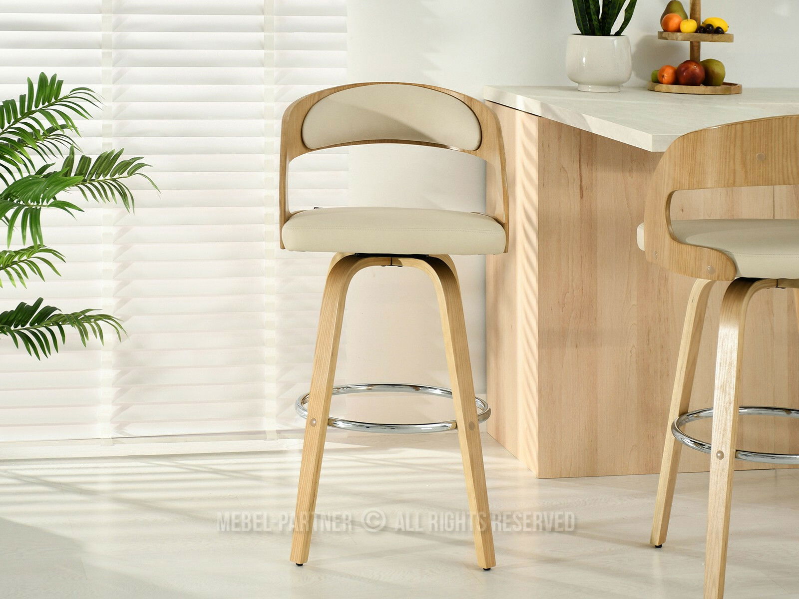Barová židle CH48 (krémová + dub)