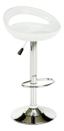 Stylová barová otočná židle s plastovým sedákem, jehož výše se dá jednoduše nastavit pomocí páčky na židli. Výška sedení je 60-81 cm. Podstavec židle je chromový a sedák je bílé barvy.