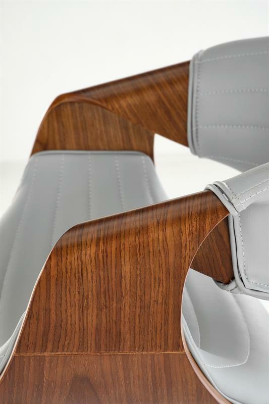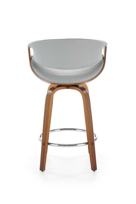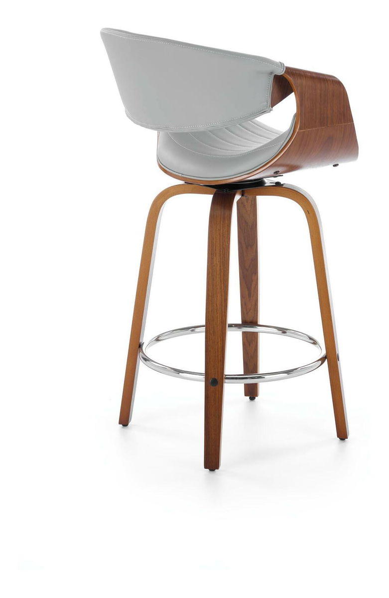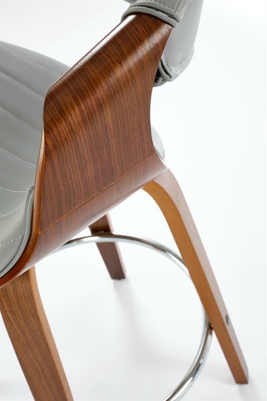 Tato skandinávská barová židle spojuje funkčnost s minimalistickým designem. Je vyrobena z odolné chromované oceli, která jí dodává pevnost a elegantní vzhled. Sedadlo je čalouněno ekokůží, zatímco vnější povrch je z překližky, což přidává židli na estetické hodnotě. S výškou sedáku 63 cm je ideální pro barové pulty nebo vyšší stoly. Židle má praktickou opěrku na nohy, která poskytuje pohodlí při sezení. Tato židle je skvělým doplňkem do moderních nebo skandinávsky laděných interiérů, kde zanechává dojem jednoduchého, ale stylového nábytku.
