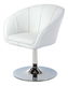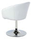 Elegantní pevná barová židle stojící na jedné robustní noze, která je i s kruhovou základnou provedení chrom. Sedák s vysokým opěradlem s opěrkami na ruce je čalouněný koženkou v barvě bílé. Komfortní sezení s vysokým čalouněným sedákem.