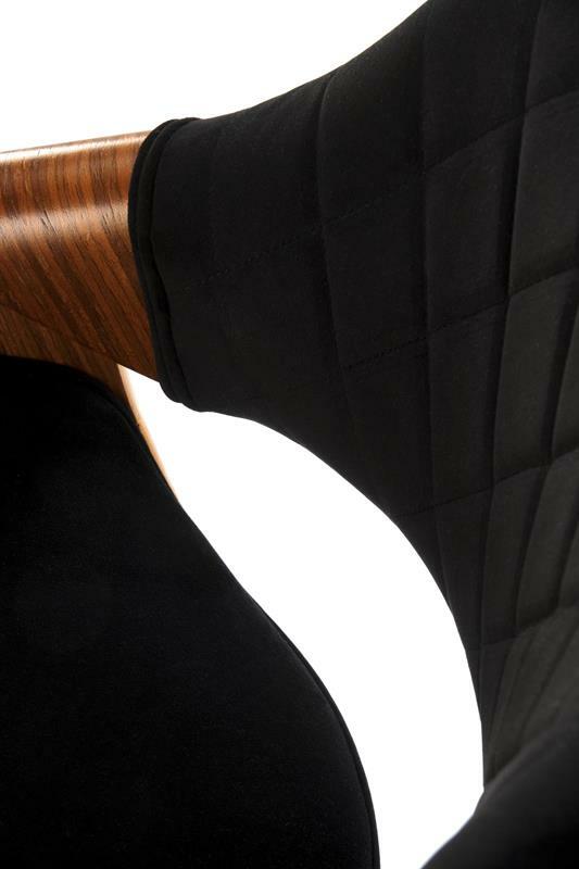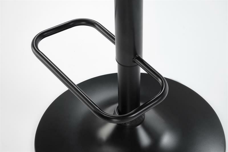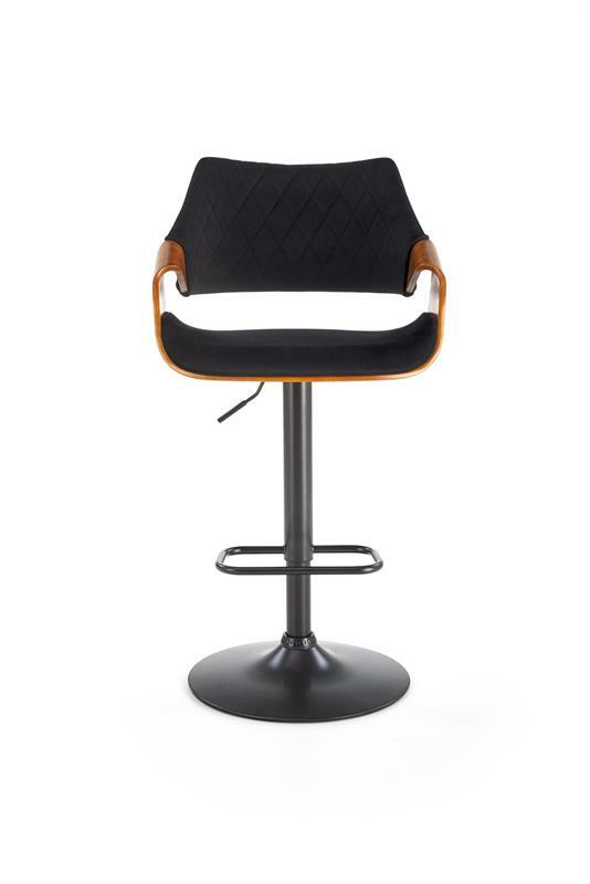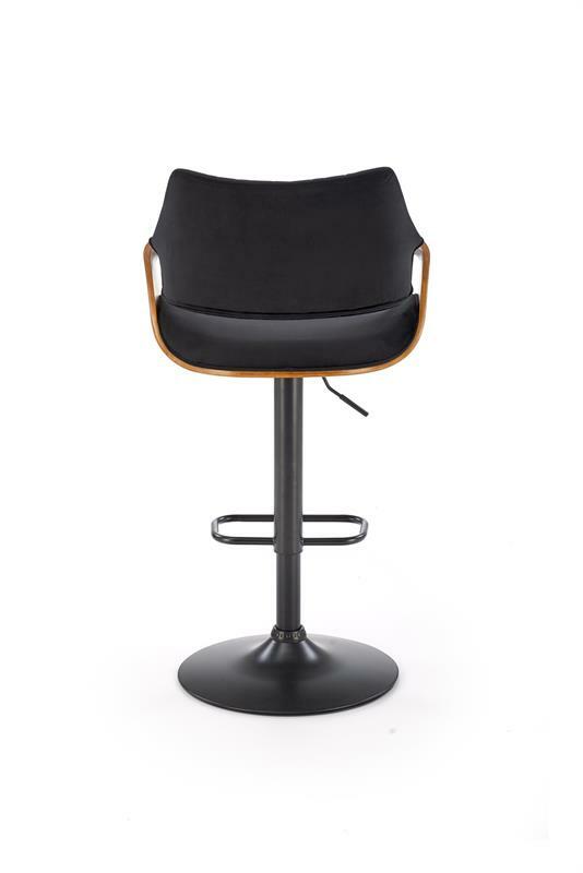 Tato moderní barová židle kombinuje styl a funkčnost, čímž je ideálním doplňkem do moderního interiéru. Je vyrobena z odolné práškově lakované oceli, která zajišťuje stabilitu a trvanlivost. Sedadlo je čalouněno měkkou velurovou tkaninou, která poskytuje pohodlné sezení, zatímco vnější část je vyrobena z překližky, což dodává židli moderní vzhled. Výška sedáku je nastavitelná, v rozmezí od 62 do 83 cm, což umožňuje flexibilní využití při různých výškách stolů a barových pultů. Praktická opěrka na nohy zvyšuje komfort při sezení. Tato židle je stylovým a praktickým doplňkem do kuchyní, jídelen nebo barových prostor.