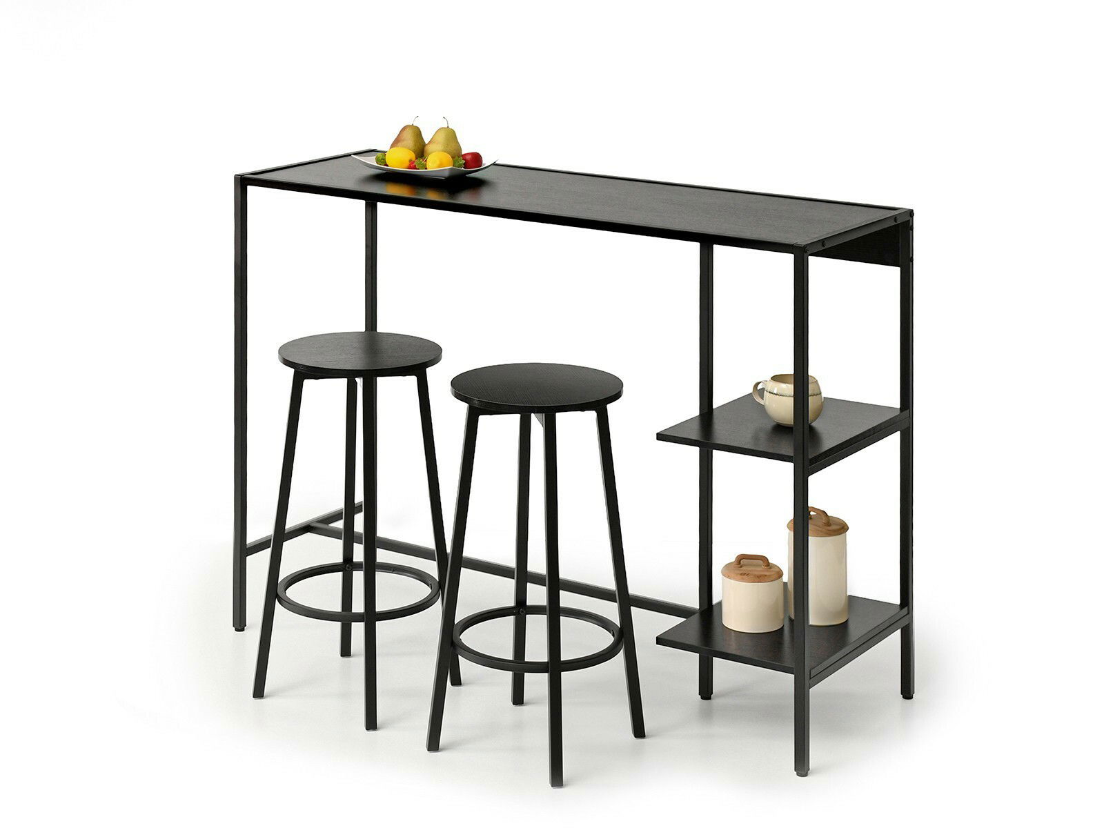 Barový set Everet (černé dřevo + černá) (pro 2 osoby)