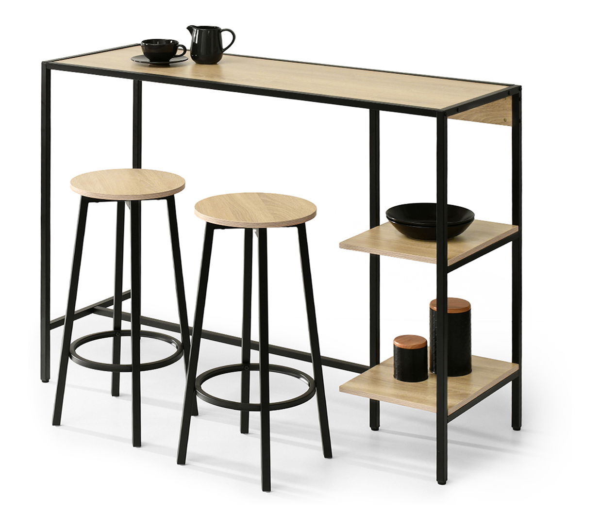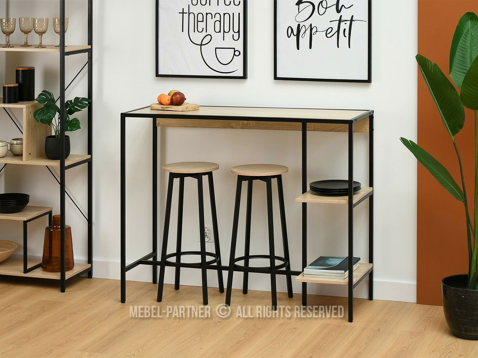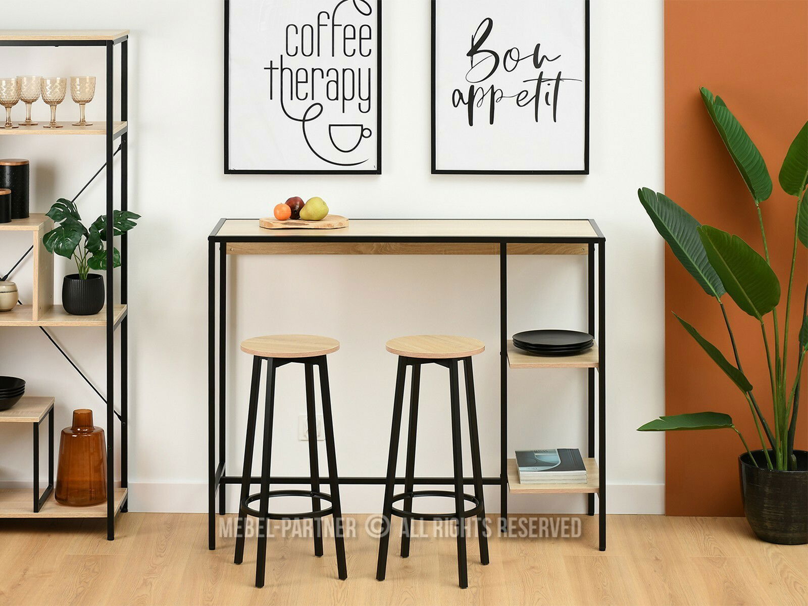 Barový set Everet (sonoma + černá) (pro 2 osoby)