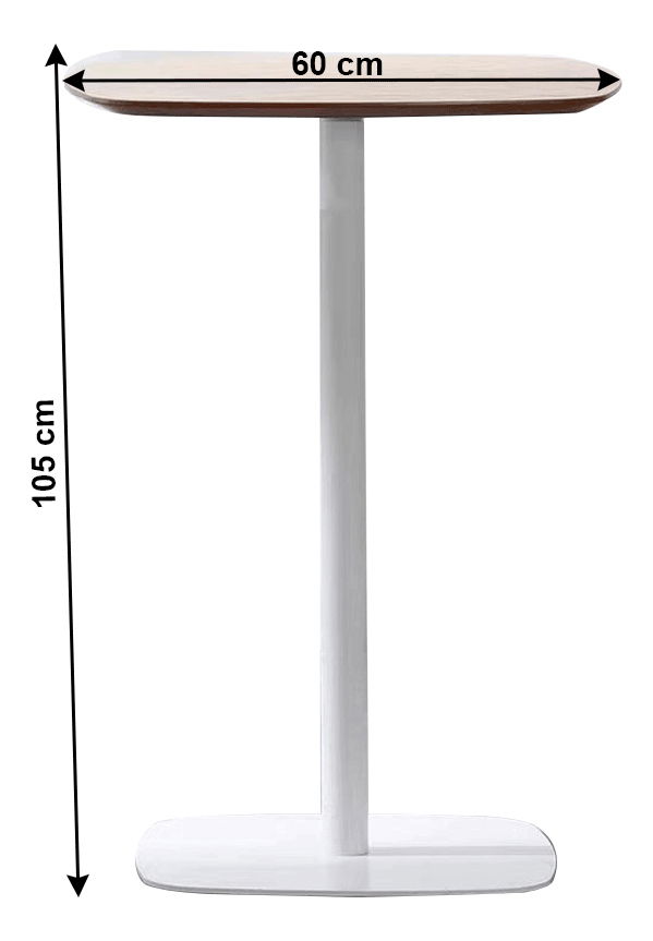 Minimalistický barový stůl o rozměrech výška 105 cm x šířka 60 cm x hloubka 60 cm v dubové a bílé kombinaci. Vyrobeno z kvalitního materiálu MDF a kovu s nosností až 20 kg. Tento stůl bude ideální volbou pro moderní byt nebo kancelář. Jeho jednoduchý, ale elegantní design a kombinace barev dodají vašemu interiéru stylový vzhled.