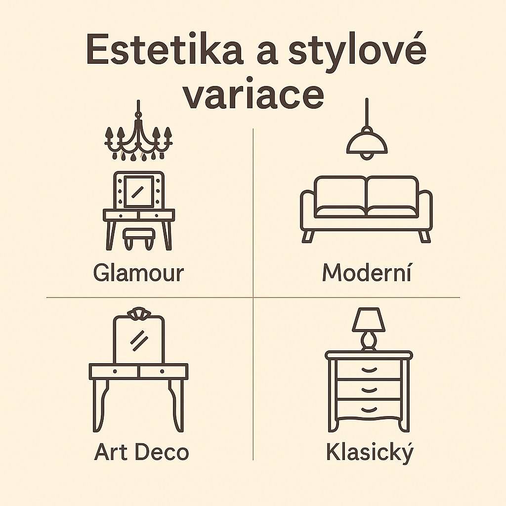 - Estetika a stylové variace: glamour, moderní, art deco, klasický a další