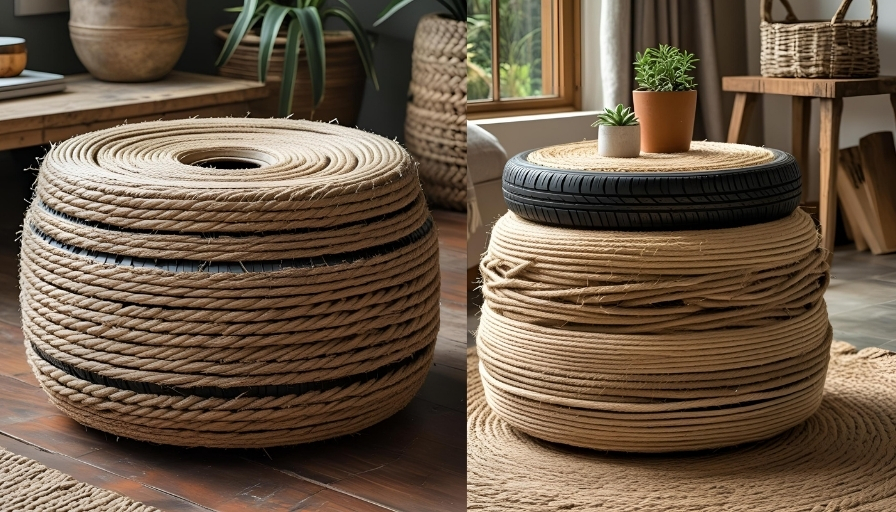 Pneumatiku můžete obmotat různými provazy, použít barevné polštáře a vytvořit si tak nádherný doplněk do pokoje. 🙂