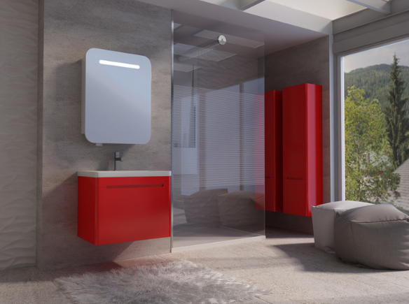 Koupelnové sestavy Juventa Tivoli můžete mít v zářivé červené barvě. Nábytek je lesklý, což celý efekt ještě umocní.