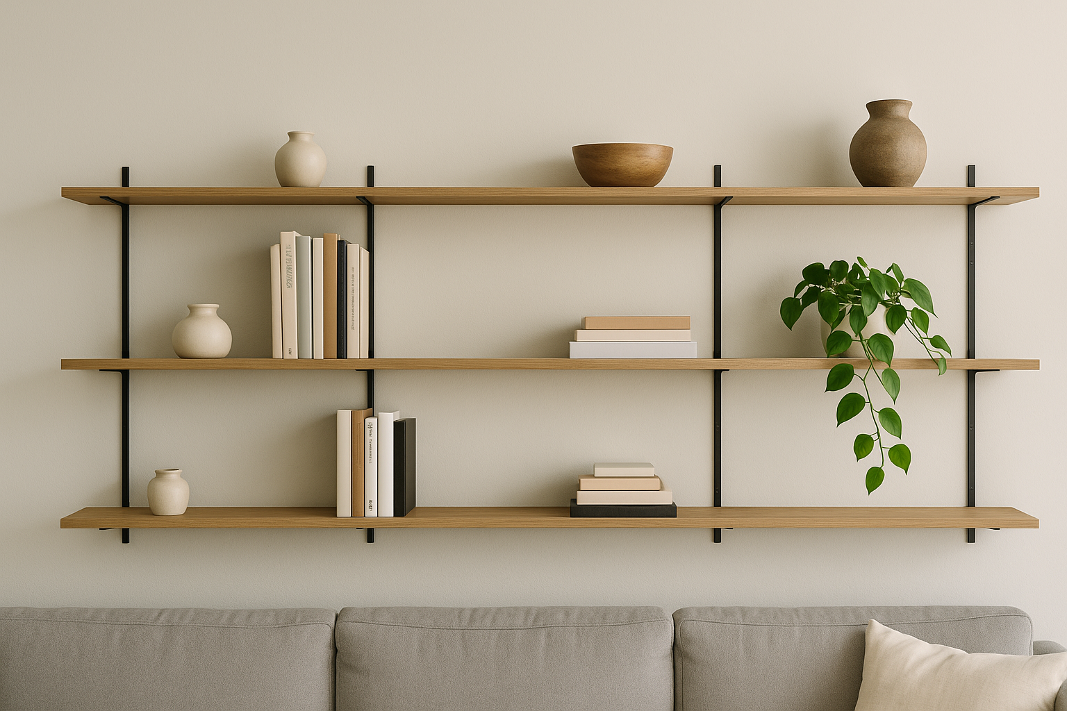 Nástěnné nebo volně stojící police dokážou opticky rozdělit otevřený prostor na zóny – bez stavebních zásahů, flexibilním způsobem (YourWorkspace, 2024). Tím se mění uspořádání bez nutnosti trvalých řešení.