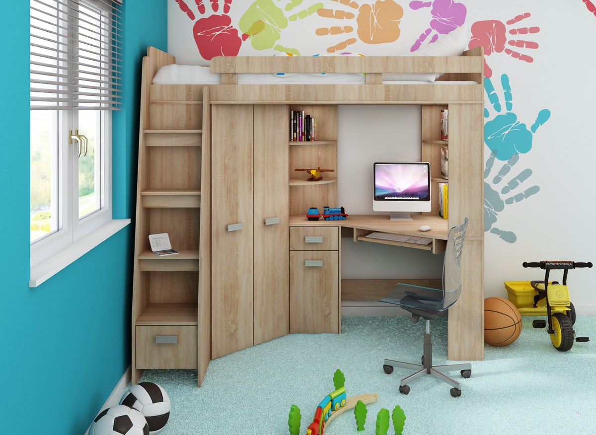 Patrové postele jsou snem mnoha malých dětí, a jinak to není ani s postelí Antresola. Tento skvělý kus nábytku řeší opravdu sofistikovaným způsobem nedostatek prostoru v malých bytech a domcích. Nejde přitom o klasickou palandu, ale o nábytek, který v sobě zahrnuje rovnou tři typy nábytku – velký rohový šatník, rohový počítačový stolek s deskou na klávesnici, skříňkou a zásuvkou, jakož i úložné police. Na tomto všem se nachází postel, díky čemuž ušetříte množství prostoru v pokoji. Ať už dětském, nebo studentském, prostě všude, kde potřebujete rozumně využít každý centimetr místa.