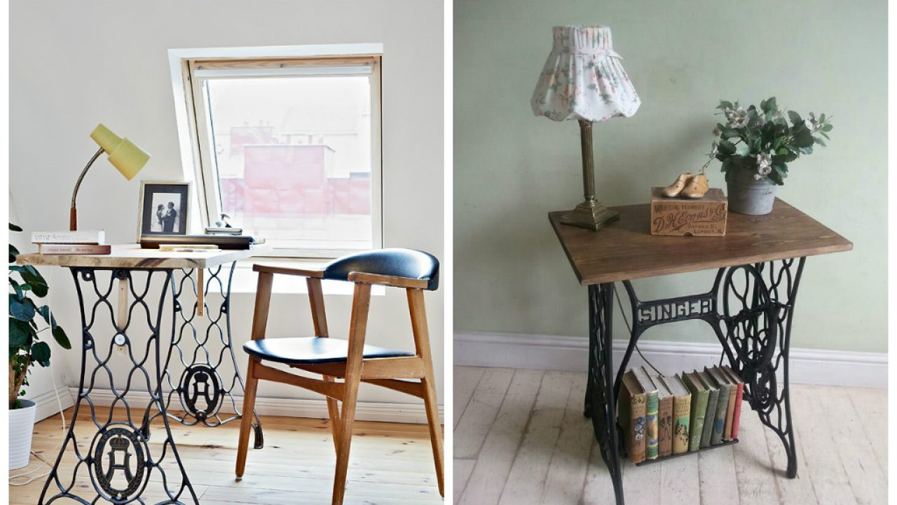 Starožitný stojan na šicí stroje lze přeměnit na stylový toaletní stolek nebo psací stůl. Doplňte ho kusem broušeného skla nebo dřeva a voilá, máte jedinečný kus nábytku, který spojuje staré s novým. Složité kovové zpracování stojanu dodává vintage kouzlo, kterému je těžké odolat.