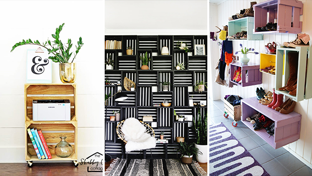 Proměňte starou bednu na víno v botník. Jejich naskládáním na sebe a upevněním k sobě vytvoříte praktický a zároveň atraktivní systém pro ukládání bot. Bedny ozdobte nebo natřete tak, aby ladily s vaší předsíní nebo vstupní halou.Použijte staré dveře jako náhradu za čelo postele.