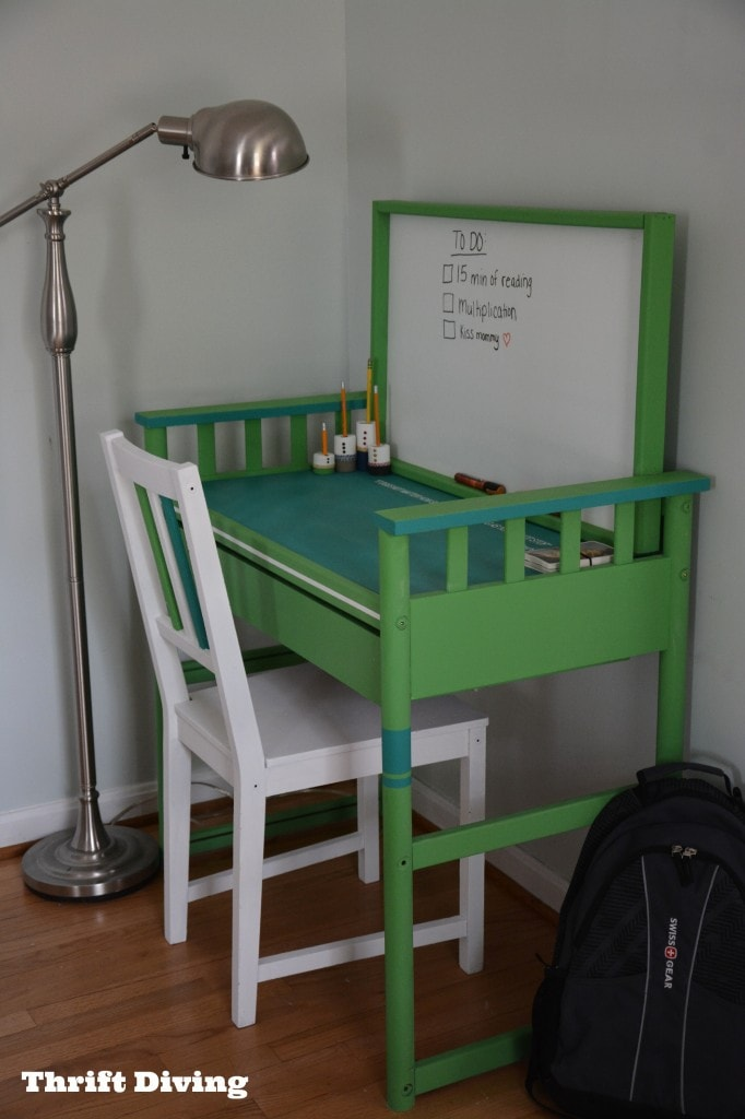 Pokud vaše dítě vyrostlo z postýlky, nevyhazujte ji příliš rychle. S trochou kreativity ji můžete proměnit v užitečný psací stůl. Stačí odstranit jednu stranu, přidat na ni desku a vytvoříte dokonalý malý pracovní prostor.