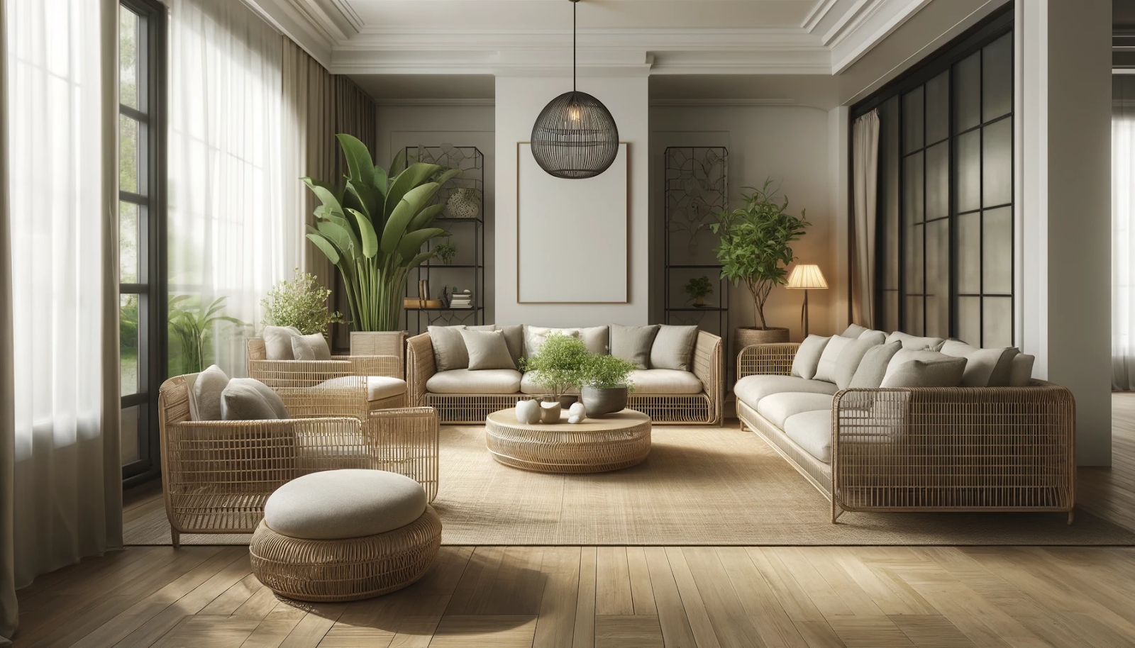 Obývací pokoj: Do obývacího pokoje můžete umístit ratanová nebo bambusová křesla a stoly, které jsou odolné, lehké a dodají místnosti přírodní nádech. Tyto materiály vytvářejí uvolněnou atmosféru a dodávají interiéru hřejivý přírodní prvek.