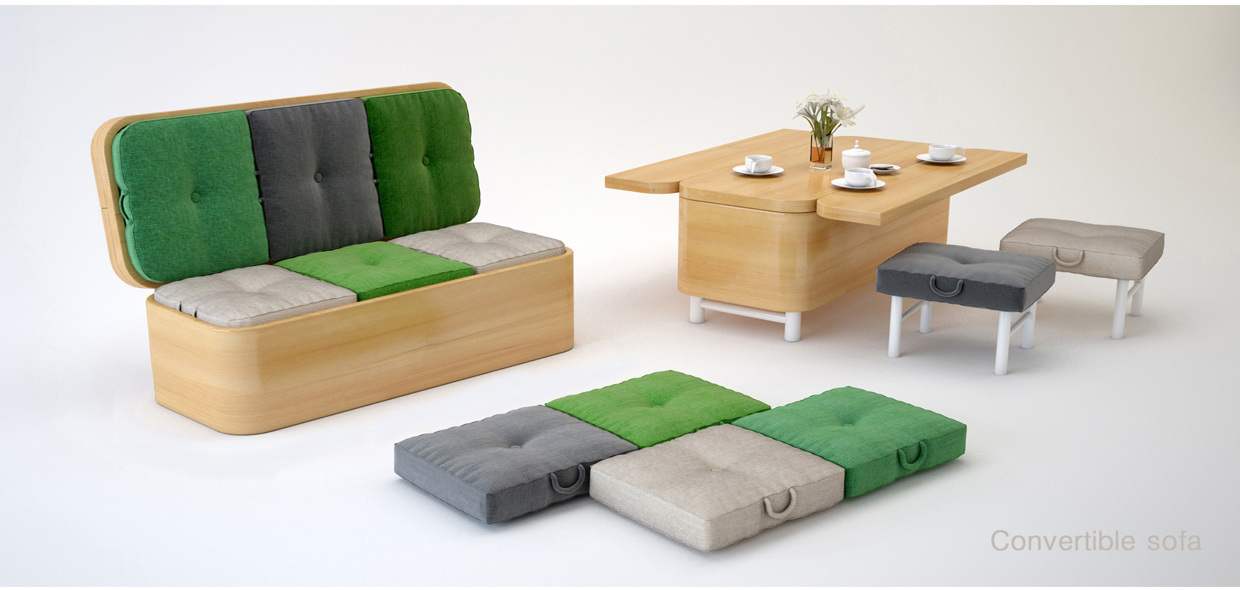 Multifunkční sedačka, která se dokáže změnit na jídelní stůl se židlemi. Přesně tak můžeme popsat pohovku od ukrajinské designérky Julie Kononenko, která vytvořila skutečně výjimečný designérský kousek nábytku. Její sedačka se dá snadno rozložit na malý jídelní stůl se šesti židlemi. Tato pohovka je tedy skvělým kreativním řešením pro každý byt, který má problém s nedostatkem místa. Nejenže je velmi praktická, ale prostě vypadá skvěle!