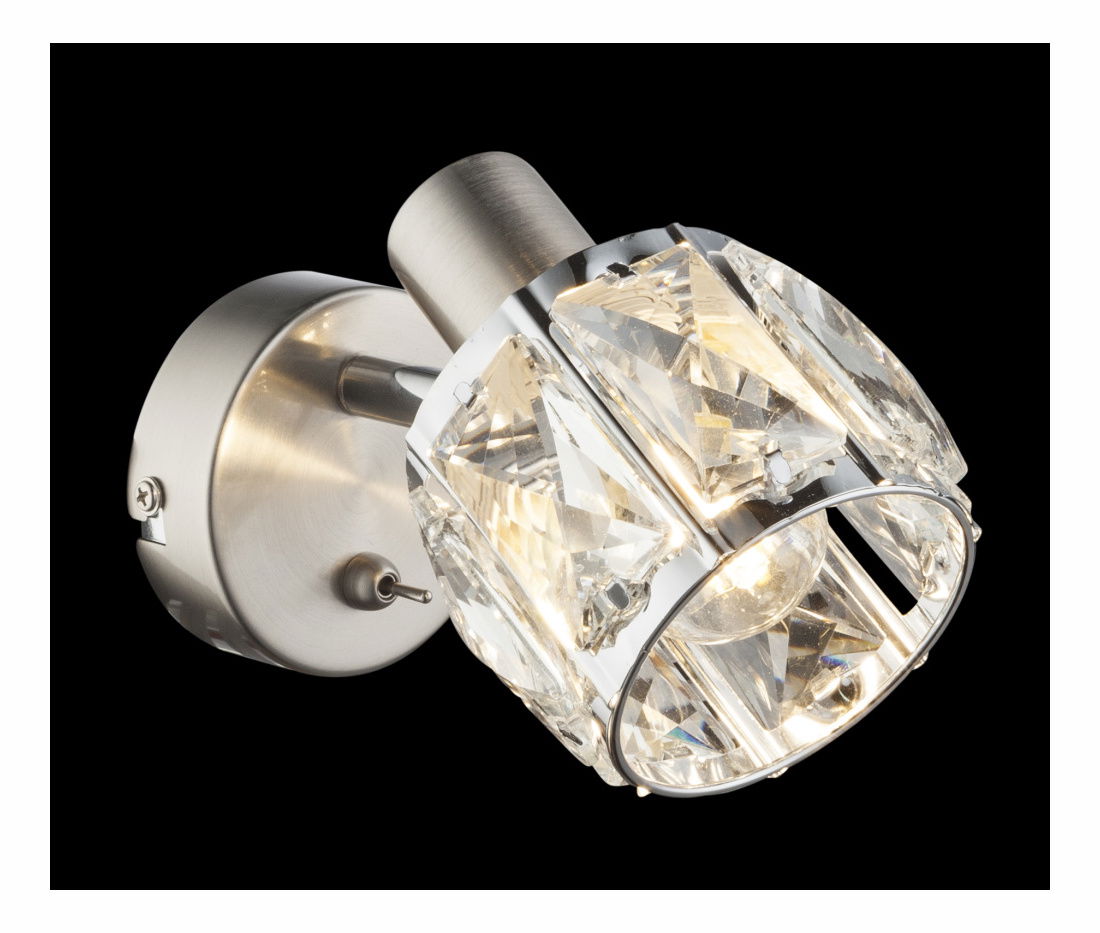 Bodové svítidlo Kris 54356-1 Nikl + Průhledná je elegantní a moderním osvětlením, které se hodí do každé místnosti. Skládá se z nikl matného kovu, chromu a čirého skleněného krystalu. Má vypínač a jeho rozměry jsou 92x125 cm. S výškou 160 cm, tato svítilna dokáže rozptýlit světlo do celé místnosti. Nutná je žárovka E14 40W 230V. Díky svému designu a kvalitnímu zpracování vám bude sloužit dlouhá léta.
