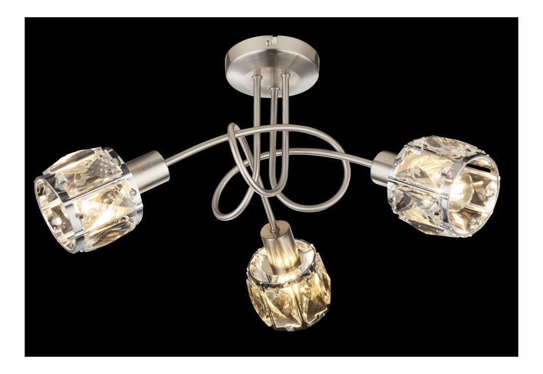 Bodové svítidlo Kris 54356-3 Nikl + Průhledná je moderní stropní lampa, která je vyrobena z matného niklu, chromu a křišťálově čirého materiálu. Svým designem dokáže dokonale doplnit jakýkoli interiér. Lampa má průměr 380 mm a výšku 240 mm. V balení však nejsou zahrnuty 3 x E14 40W 230V žárovky. Tento produkt přináší eleganci a jedinečný vzhled do vašeho domova.