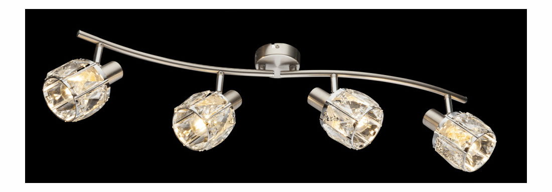 Popis produktu: Bodové svítidlo Kris 54356-4 Nikl + Průhledná je moderní a elegantní kousek do vašeho interiéru. Svým nikelově matným povrchem a čirými skleněnými krystaly se krásně hodí do každé místnosti. Bodová světla jsou pohyblivá a umožňují přesné nastavení osvětlení. Rozměry světla jsou 700x180 mm a neobsahuje 4xE14 žárovky s výkonem 40W a napětím 230V. Součástí svítidla je také průhledný kryt pro dokonalé doplnění vašeho interiéru.