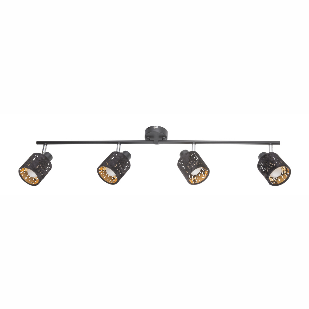 Bodové osvětleníchrom, černý samet,nastavitelné stínítko s ozdobným děrováním - uvnitř zlaté,LXH: 840x160,bez 4xE14 8W 230V.