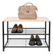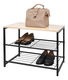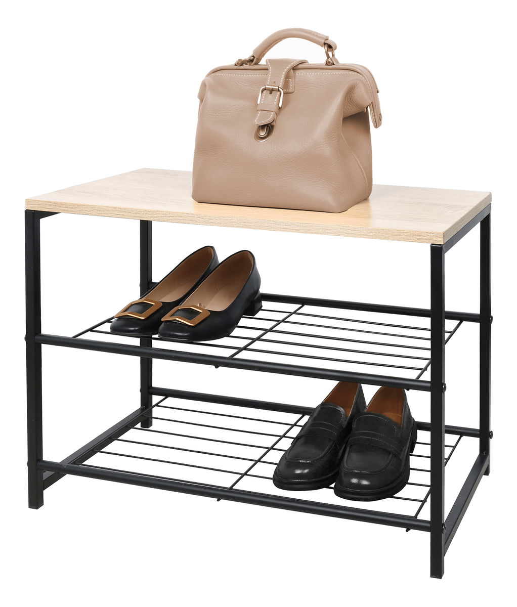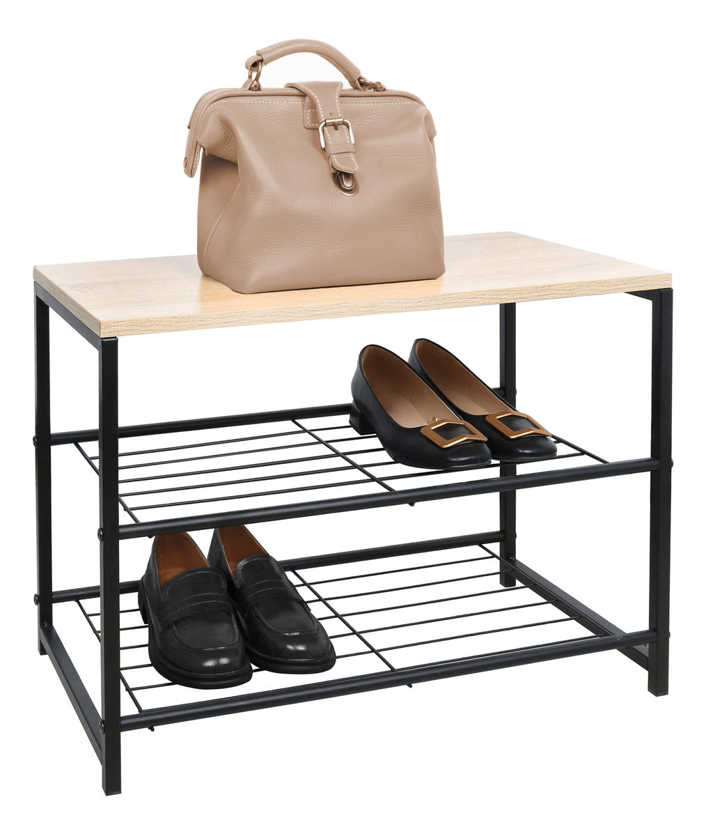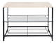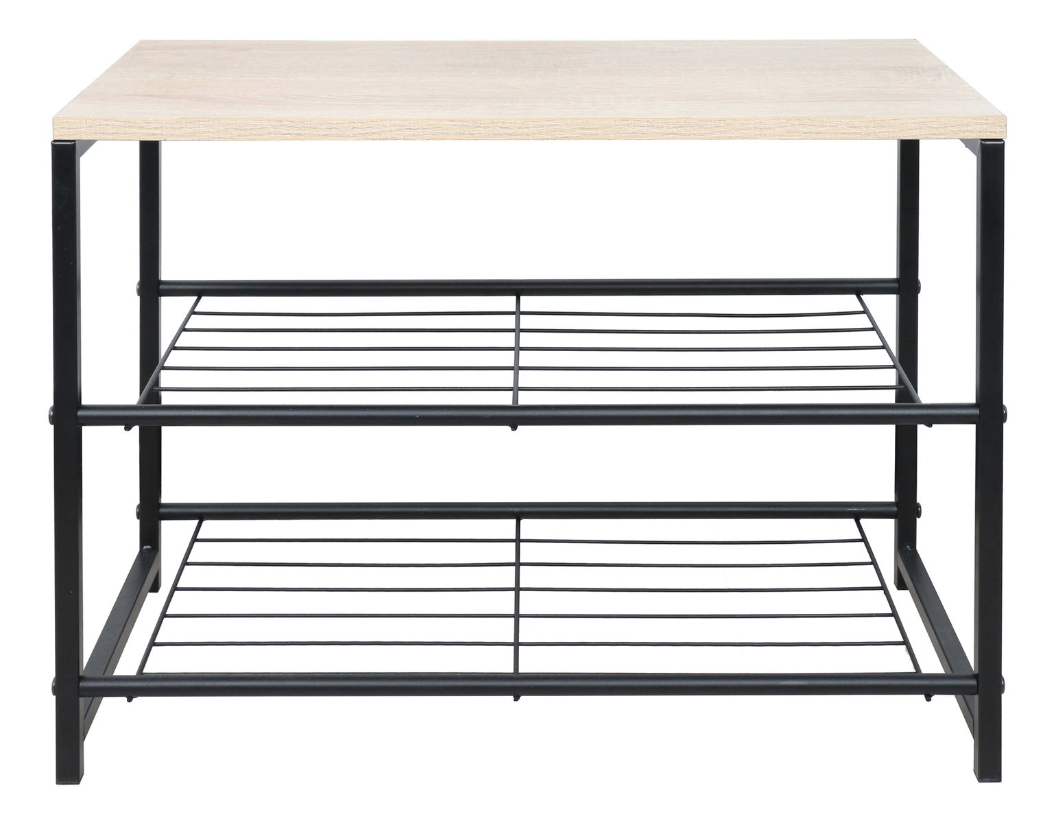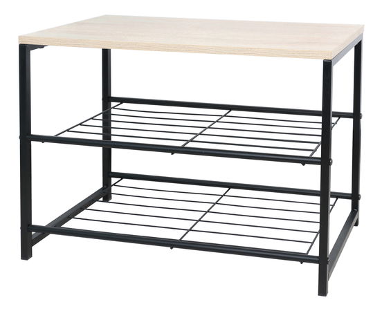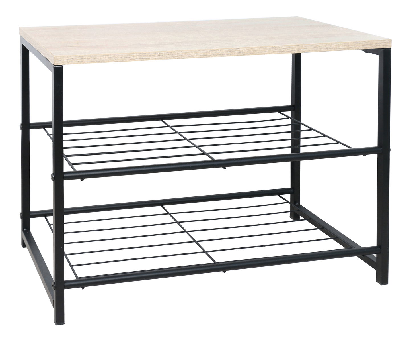 Dvouřadý botník Tamis je tím pravým řešením při udržování pořádku ve vaší předsíni. Konstrukce botníku je vyrobena z kovu v černé barvě. Vrchní část botníku je pokryta dřevěnou deskou v přírodní barvě, která může sloužit k odkládání kabelek, klíčů, šál nebo čepic. Praktické využití nabízí v podobě dvou mřížkovaných polic a jedné vrchní dřevěné police.
