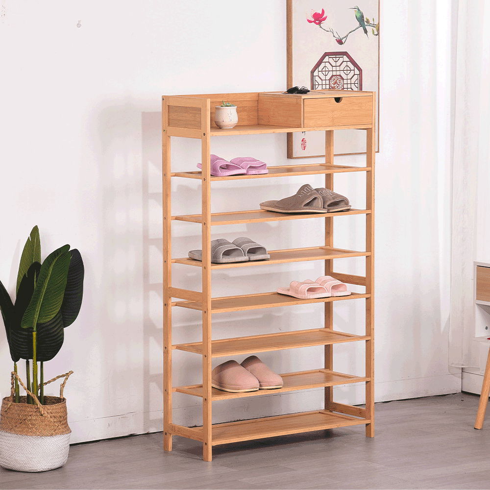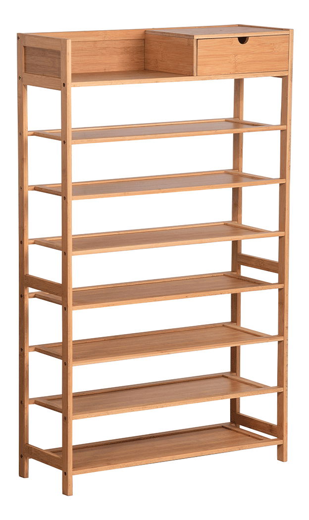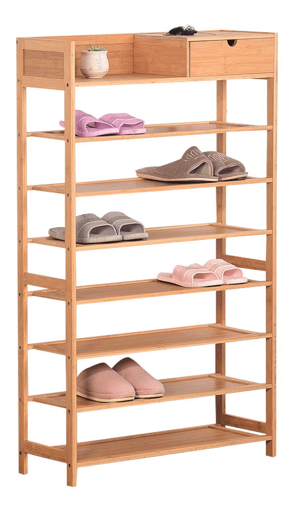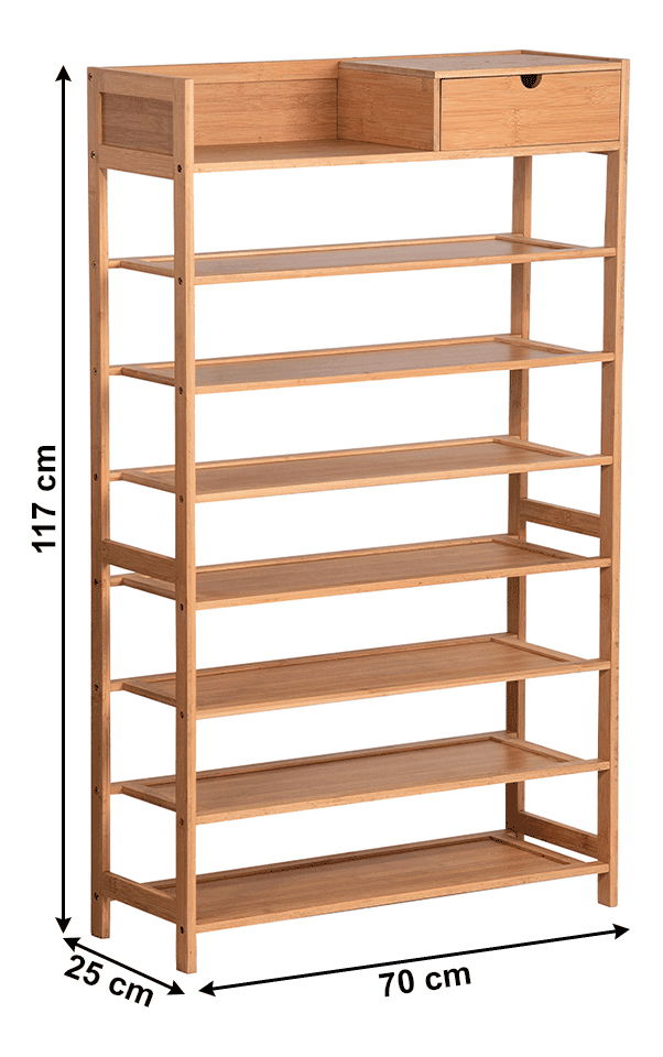 7řadý botník Annite (bambus) je designovým doplňkem do vaší domácnosti, který vám pomůže udržet vaše věci uspořádané a přístupné. Vyrobeno z lakovaného bambusu, regál má 7 polic a 1 zásuvku, které poskytují dostatek prostoru pro uložení vašich oblíbených předmětů. S nosností až 50 kg, tento botník je dostatečně silný na to, aby udržel vaše těžší věci. S jeho výškou 117 cm, šířkou 70 cm a hloubkou 25 cm, botník se hodí do jakéhokoli prostoru a dodává mu stylový nádech.