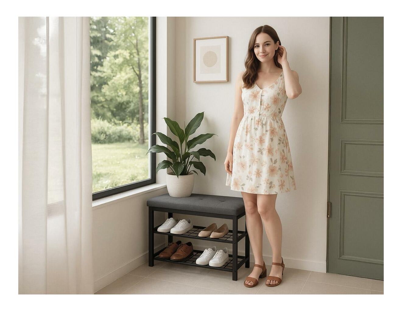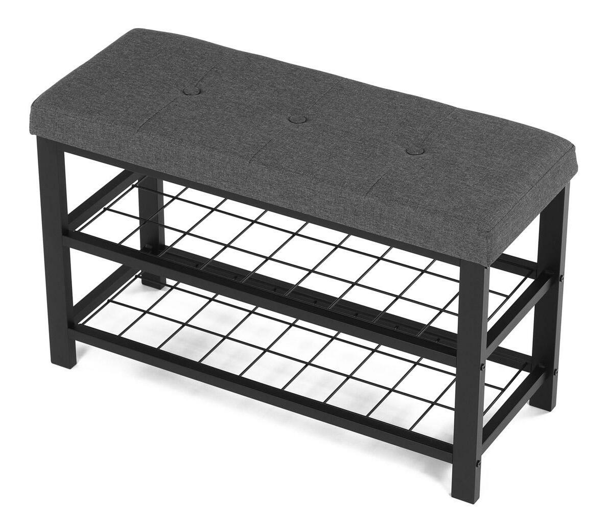 ZobrazitStylový botník s lavicí přináší kombinaci pohodlí a praktičnosti. Šedé polstrované sedátko nabízí komfort při obouvání, zatímco dvě prostorné kovové police poskytují dostatek místa pro uskladnění obuvi. Stabilní konstrukce z kovu zajišťuje odolnost a dlouhou životnost. Elegantní design v neutrálních tónech snadno zapadne do moderních i tradičních interiérů. Tento botník je ideální volbou pro předsíně, kde pomůže udržet pořádek a zároveň přidá praktický sedací prvek.