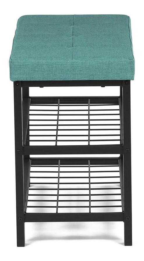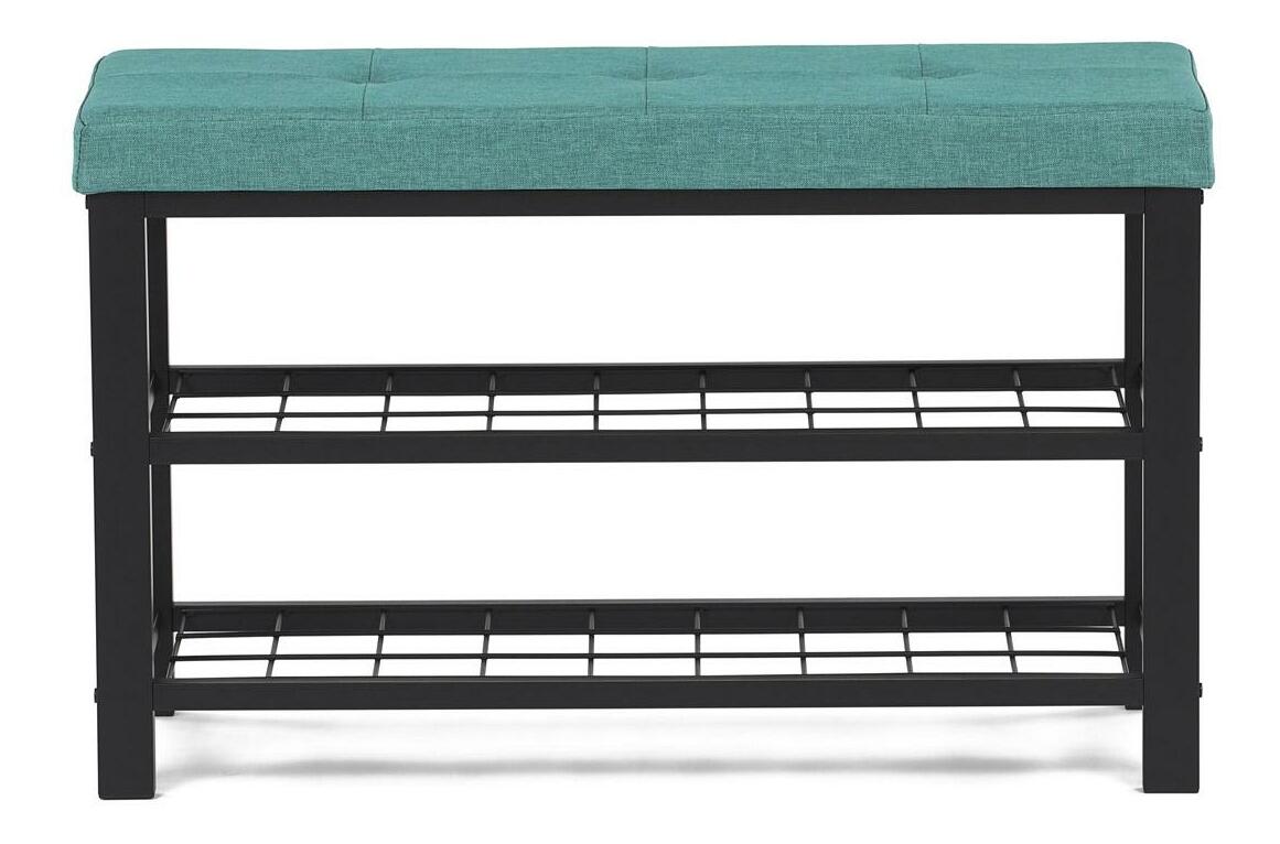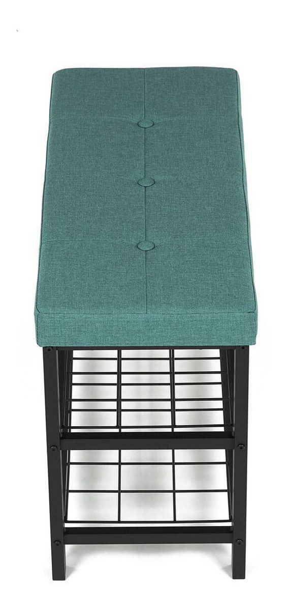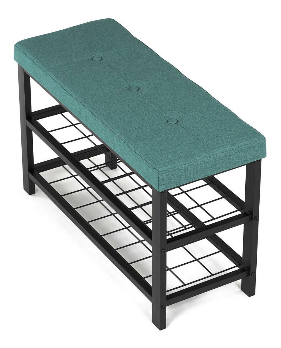 Stylový botník s lavicí přináší kombinaci pohodlí a praktičnosti. Zelené polstrované sedátko nabízí komfort při obouvání, zatímco dvě prostorné kovové police poskytují dostatek místa pro uskladnění obuvi. Stabilní konstrukce z kovu zajišťuje odolnost a dlouhou životnost. Elegantní design v neutrálních tónech snadno zapadne do moderních i tradičních interiérů. Tento botník je ideální volbou pro předsíně, kde pomůže udržet pořádek a zároveň přidá praktický sedací prvek.