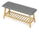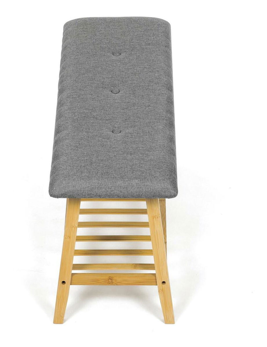 Tento elegantní botník v přírodní barvě je perfektním doplňkem do vaší předsíně. Vyroben z masivního bambusu a vybaven šedou polstrovanou sedací plochou, poskytuje nejen komfort při obouvání, ale také praktický úložný prostor pro vaši obuv.