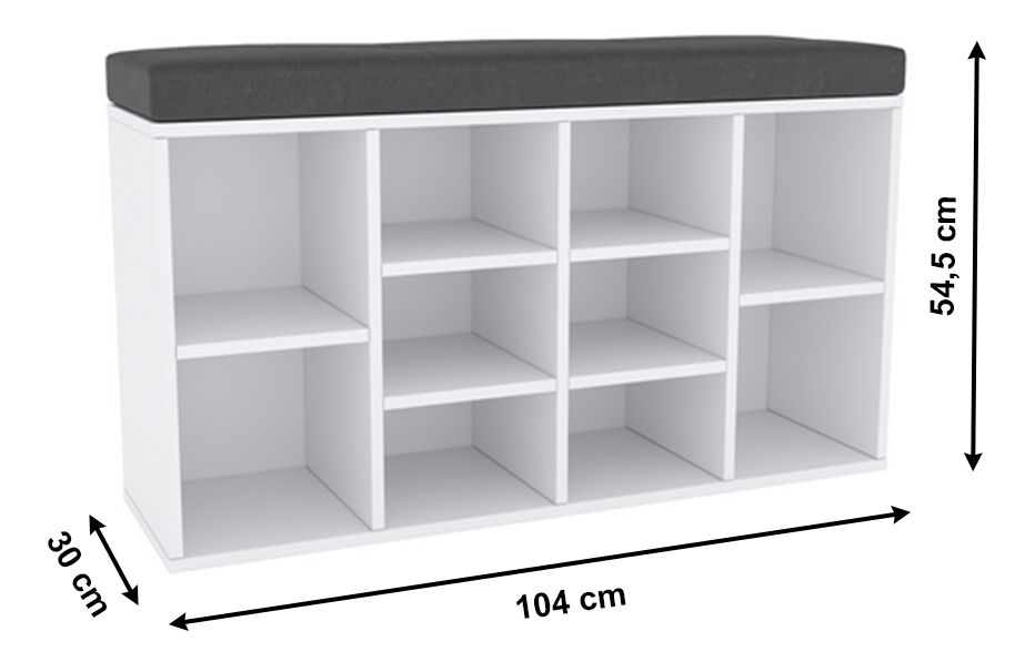 Botník Farin (bílá) je praktický nábytek pro každý domov. Díky své velikosti se hodí do menších pokojů nebo prostor, kde potřebujete úložný prostor pro boty a jiné věci. S rozměry 54,5 x 104 x 30 cm vám nabízí dokonalé řešení pro uskladnění a pořádání obuvi. Botník je vyroben z kvalitního laminovaného DTD a zvládne pohodlně unést až 90 kg. Zásuvka má nosnost až 7 kg, takže můžete skladovat také těžší předměty. Bílá barva přidává do vašeho interiéru svěžest a harmonizuje s ostatním nábytkem. Botník Farin je ideálním řešením pro ty, kteří hledají praktické a stylové řešení pro své boty.