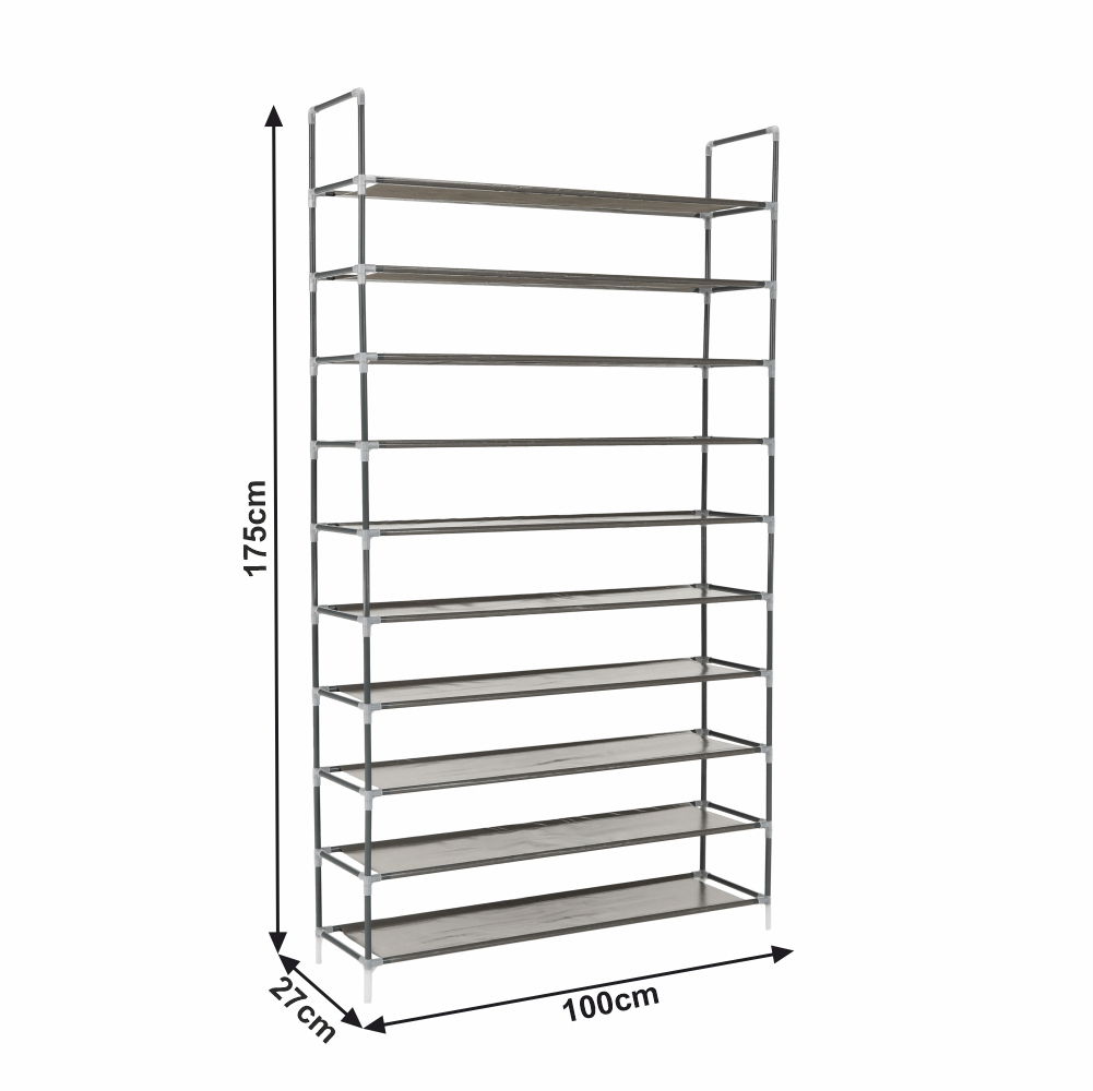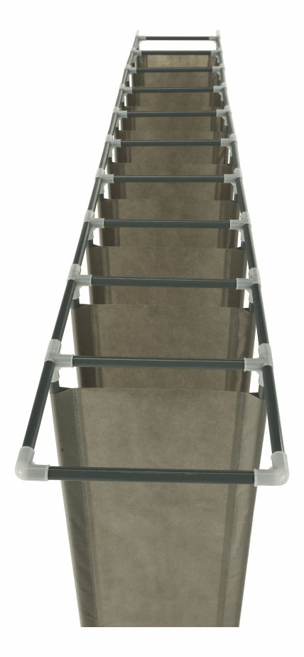 Popis produktu: Botník Filio je ideálním řešením pro pořádání vašich bot. S rozměry 100x27x175 cm a nosností 30 kg, tento botník nabízí dostatek místa pro uložení až 50 párů bot. Je vyroben z látky a kovu a dodává se v demontu. Botník má 10 řad, což umožňuje snadné třídění a nalezení vašich oblíbených bot. Šedá barva se hodí do každého interiéru a zajišťuje elegantní vzhled.