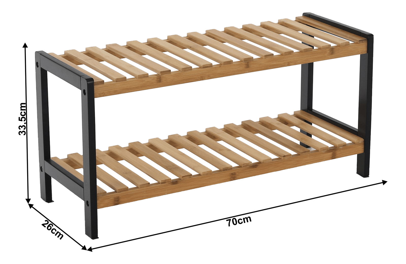 Botník Kontur výška 33,5 cm šířka 70 cm hloubka 26 cm v kombinaci bambusu a černé barvy je ideálním doplňkem do vašeho interiéru. Díky svým rozměrům se snadno vejde do každé místnosti a poskytne dostatek místa pro uložení bot. nejen praktičnost, ale také vzhledový efekt, který se hodí do každého domova. zaručí dlouhou životnost tohoto botníku.