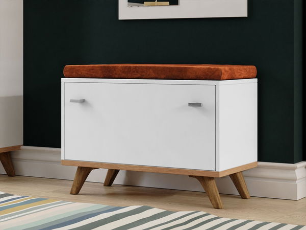 Botník Tunbergia TN04 je ideální volbou pro ty, kteří hledají pohodlí a styl. Skříňka na boty Tunbergia TN04 se sedátkem je velmi praktická a jedná se o pěkný kus nábytku do haly. Díky tomu získáte sedátko, které vám usnadní obouvání a zouvání obuvi každý den. Sedátko je vybaveno pohodlným polštářem. Spodní část skříňky ovšem nabízí prostor pro několik párů obuvi. Skříňka se otevírá ve stylu barové skříňky, skříňku můžete otevřít pomocí stylových úchytek. Na druhé straně je struktura botníku založena na vysokých nohách, které jsou v barvě přírodního dřeva, které dokonale ladí s bílým tělem. Rozměry skříňky jsou 35 cm hluboké, 69 cm široké a 50 cm vysoké. Rozměry: šířka: 69 cm, výška: 50 cm, hloubka: 35 cm Provedení: laminovaná deska o tloušťce 16 mm, plastové nohy a rukojeti, obyčejné panty, Hrany z PVC Záruka: 24 měsíců